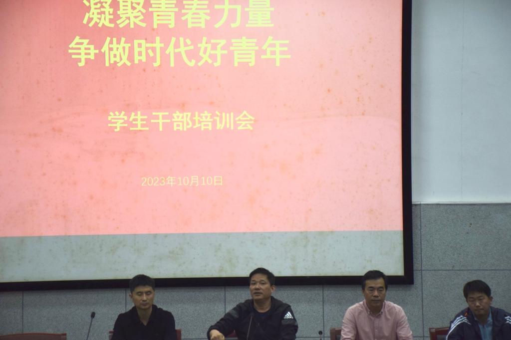 为进一步提高新葡的京集团350vip学生会学生干部的积极性、主动性,提升团队凝聚力与向心力,新葡的京集团350vip于2023年10月10日12点30分以“凝聚青春力量,争做时代好青年”为主题在新葡的京集团350vip报告厅召开学生干部培训会,参加此次会议的有新葡的京集团350vip党委书记李高、党委副书记王德玉、团委书记胡杰、团委副书记马超、学生会、青年志愿服务总队全体成员、社团负责人以及各班班长和团支书。