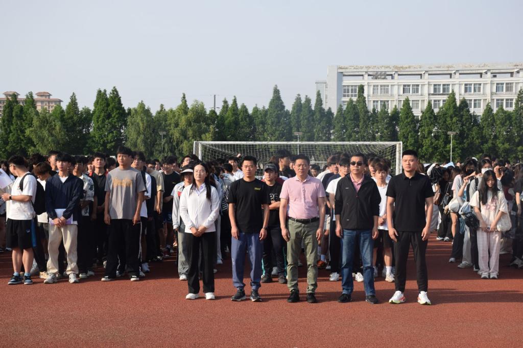 在端午节来临之际,为了传承和弘扬传统文化,激发同学们对民族文化的自豪感和认同感。2024年6月3日7:10由新葡的京集团350vip牵头,联合外国语学院、环境与测绘工程学院在田径场举行“传承端午文化,弘扬爱国精神”为主题的升国旗仪式,参与本次活动的领导以及嘉宾有新葡的京集团350vip党委书记李高,党委副书记王德玉,学生事务管理科科长江晓翔,23级辅导员陈冲,三个院全体23级学生及学生会全体成员。